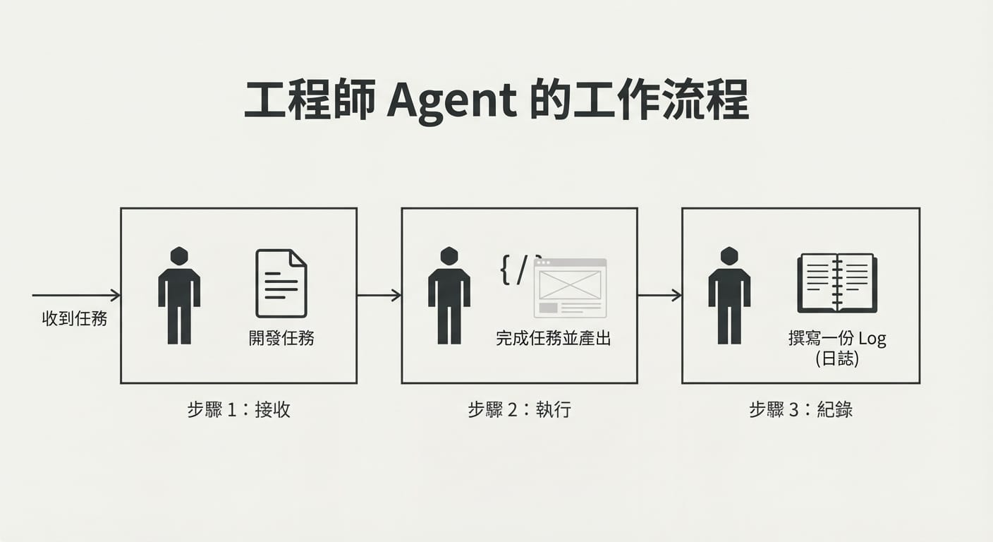 我自己很建議讓每一組 Agent 除了開發工作以外,在開發完成後都應該寫一份 Log(日誌),講述他們之前做了什麼。