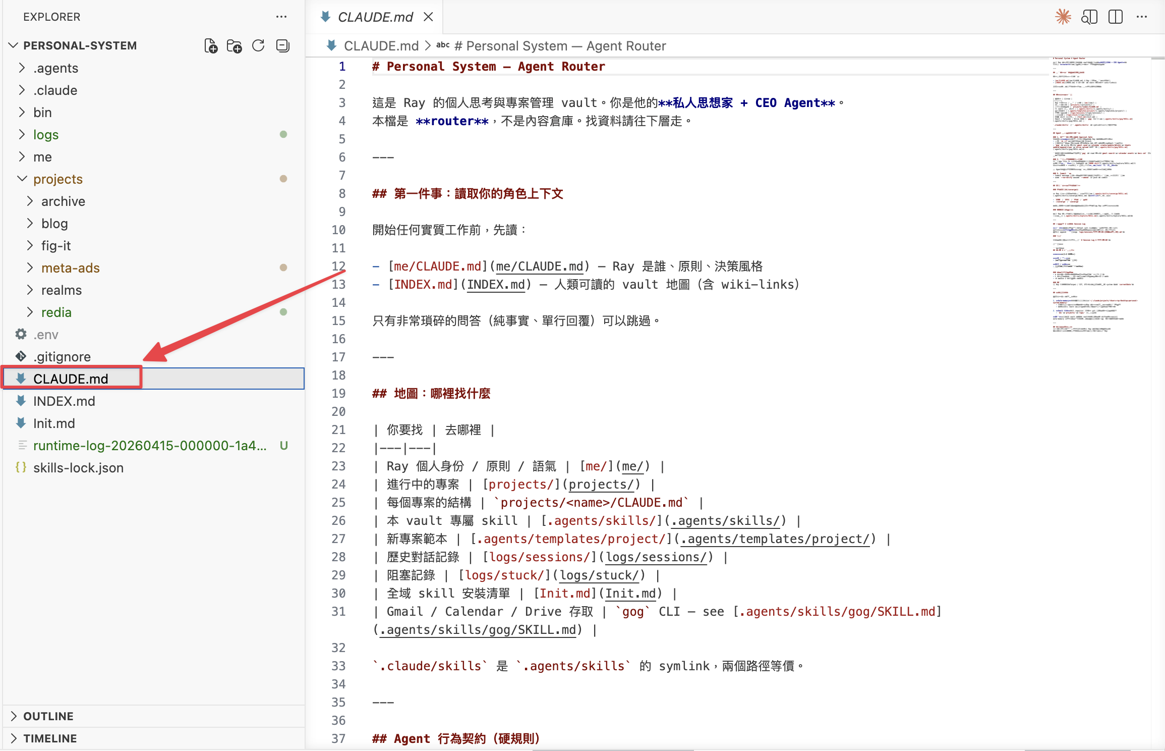 CLAUDE.md 是我覺得最重要的一個檔案,你可以把它理解成 Claude Code 的憲法,或者所謂的永久記憶。