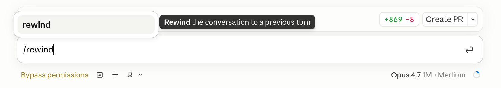 運作方式: 在 Claude Code 中,這是原生設計:每次你提交指令前,AI 都會自動進行快照(Snapshot)並設立一個存檔點。如果你不小心把程式碼改壞了,或是對目前的進度不滿意,你最慘的情況也只需要退回到這個存檔點,而不需要從頭開始。